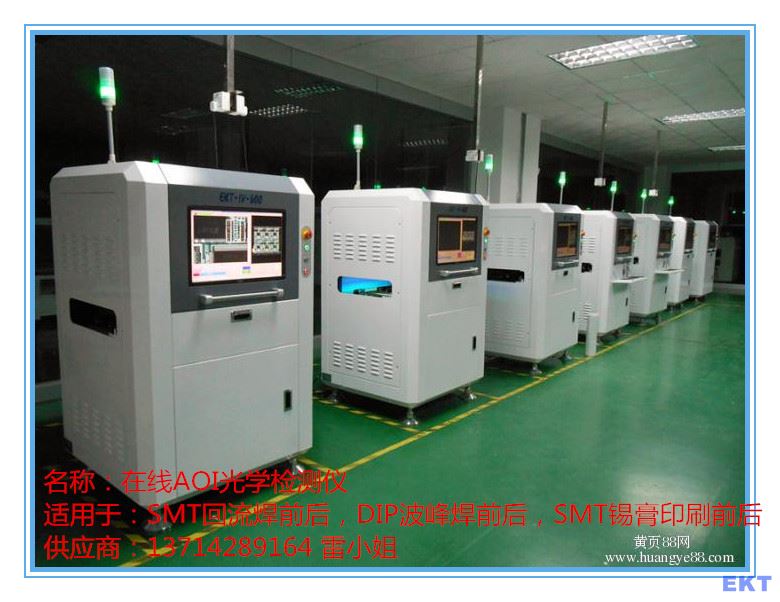 AOI/SPI銷售專線:13714289164(微信同號(hào))雷小姐,深圳易科訊科技有限公司是一家業(yè)內(nèi)領(lǐng)先的自動(dòng)光學(xué)檢測(cè)儀AOI設(shè)備供應(yīng)商,公司致力于自動(dòng)光學(xué)檢測(cè)儀設(shè)備的設(shè)計(jì)、研發(fā)、制造、銷售、安裝和服務(wù)。公司生產(chǎn)的EKT易科訊系列AOI(全自動(dòng)光學(xué)檢測(cè)儀)產(chǎn)品主要適用于SMT(表面貼裝技術(shù))領(lǐng)域內(nèi)PCBA(印刷電路板組裝)制程中,外觀缺陷的高速精確檢測(cè)、統(tǒng)計(jì)和分析,有利于提高產(chǎn)能、提升品質(zhì)、改善制程,替代人工肉眼目檢品質(zhì)QC檢查,從而能夠?yàn)榭蛻魟?chuàng)造潛在的價(jià)值。