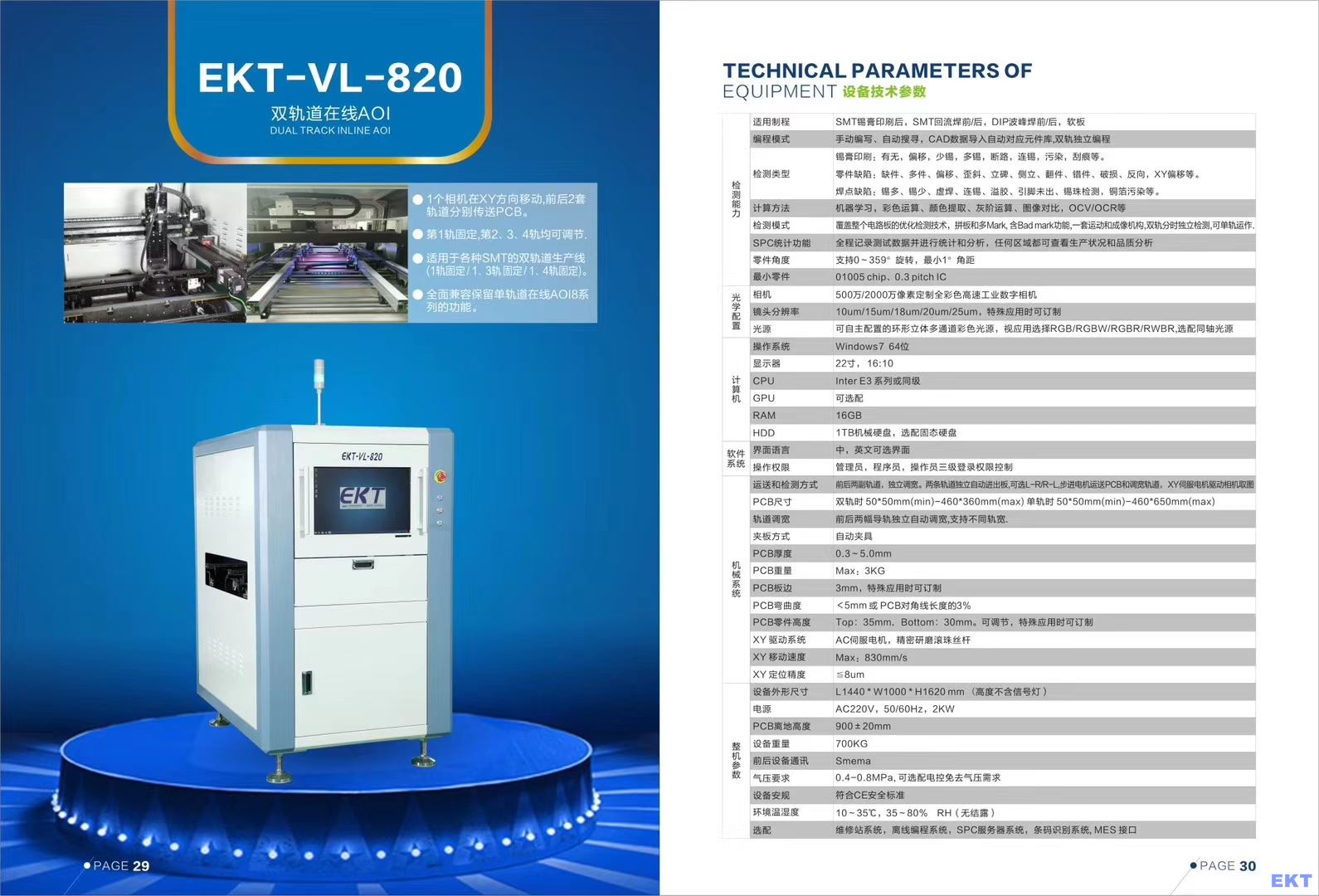 1、設備名稱: 在線雙軌AOI自動光學檢測儀( 設備型號:EKT-VL-820 )