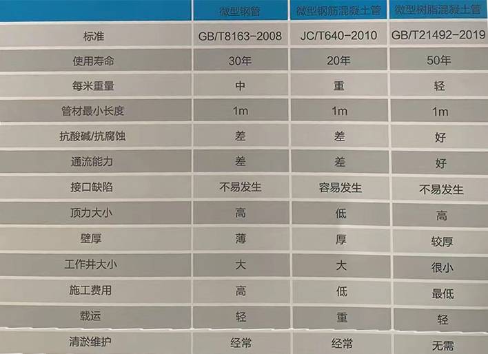 》》樹脂混凝土微型頂管與其他管材性能比較